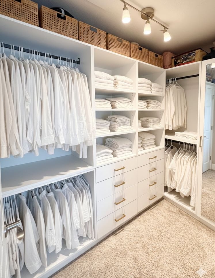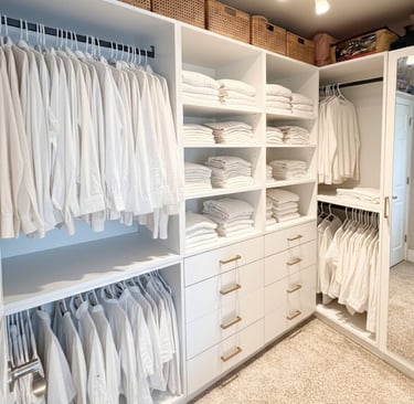Transform your chaotic morning routine into a boutique experience. The Walk-In Closet Starter Pack is more than just shelves; it is a comprehensive organization system designed to maximize every inch of your storage space. We move beyond standard wire racks to provide you with solid, furniture-grade cabinetry that anchors the room.